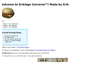 Welcome To Eriklego Universe(tm) (ELU) its the ultimate Kid Friendly Website
